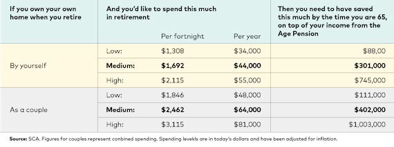 The SCA research is a general guide, and it requires individuals or couples to work out how much they’d like to spend in addition to any entitlement they have to receive the Age Pension.
